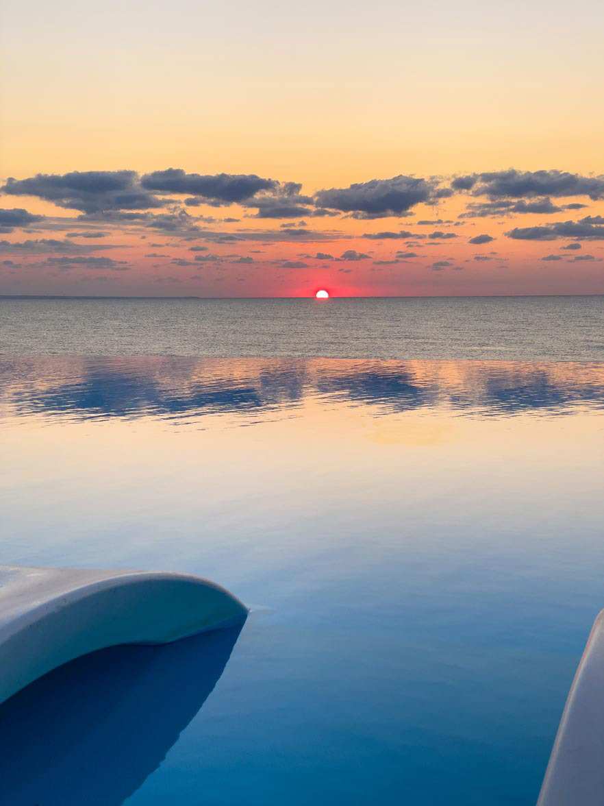 Реших да уловя изгрева от Инфинити басейна на Хотел ИНТЕРНАЦИОНАЛ, който гледа точно към морето и създава илюзията за безкрайност.